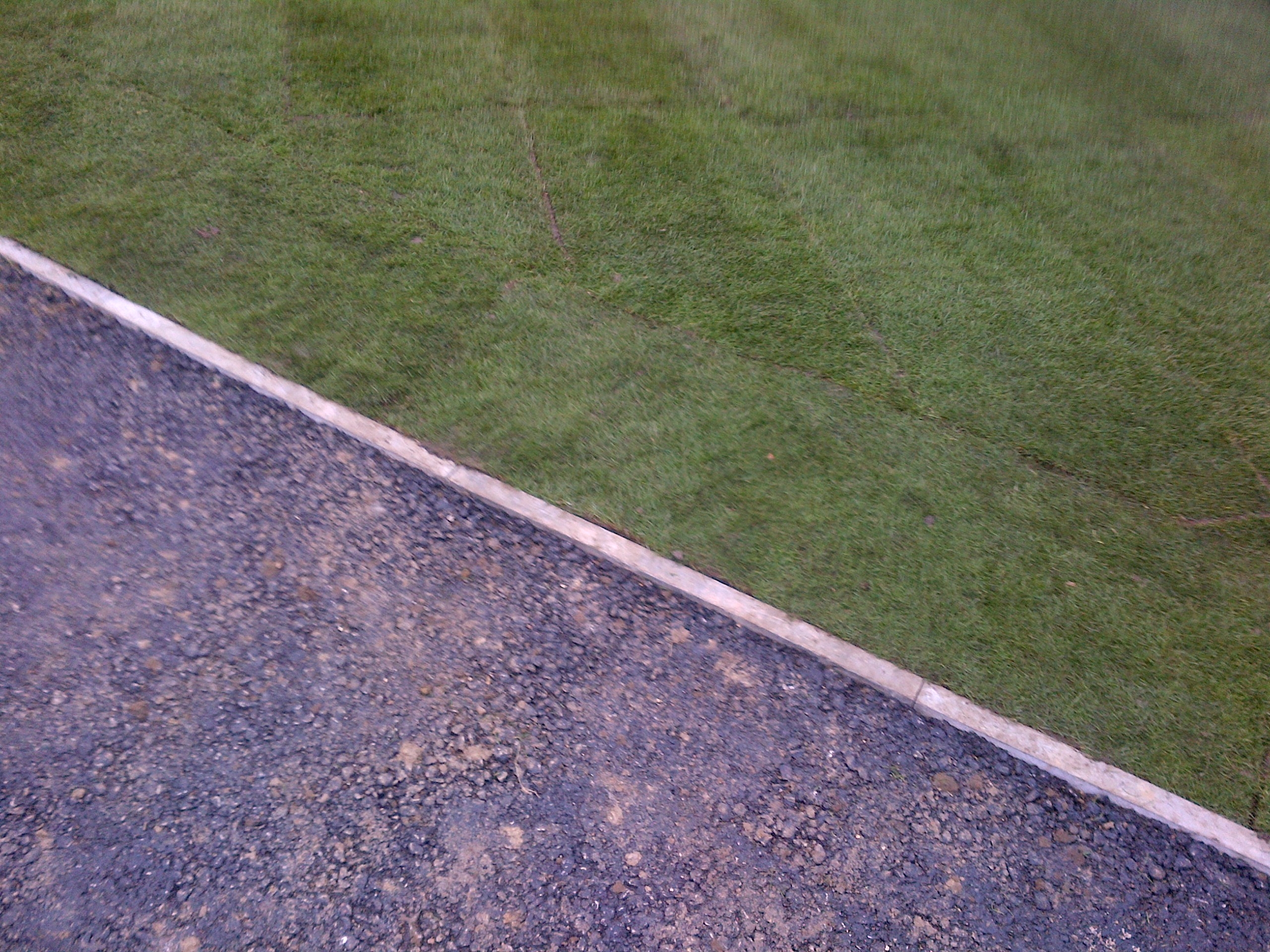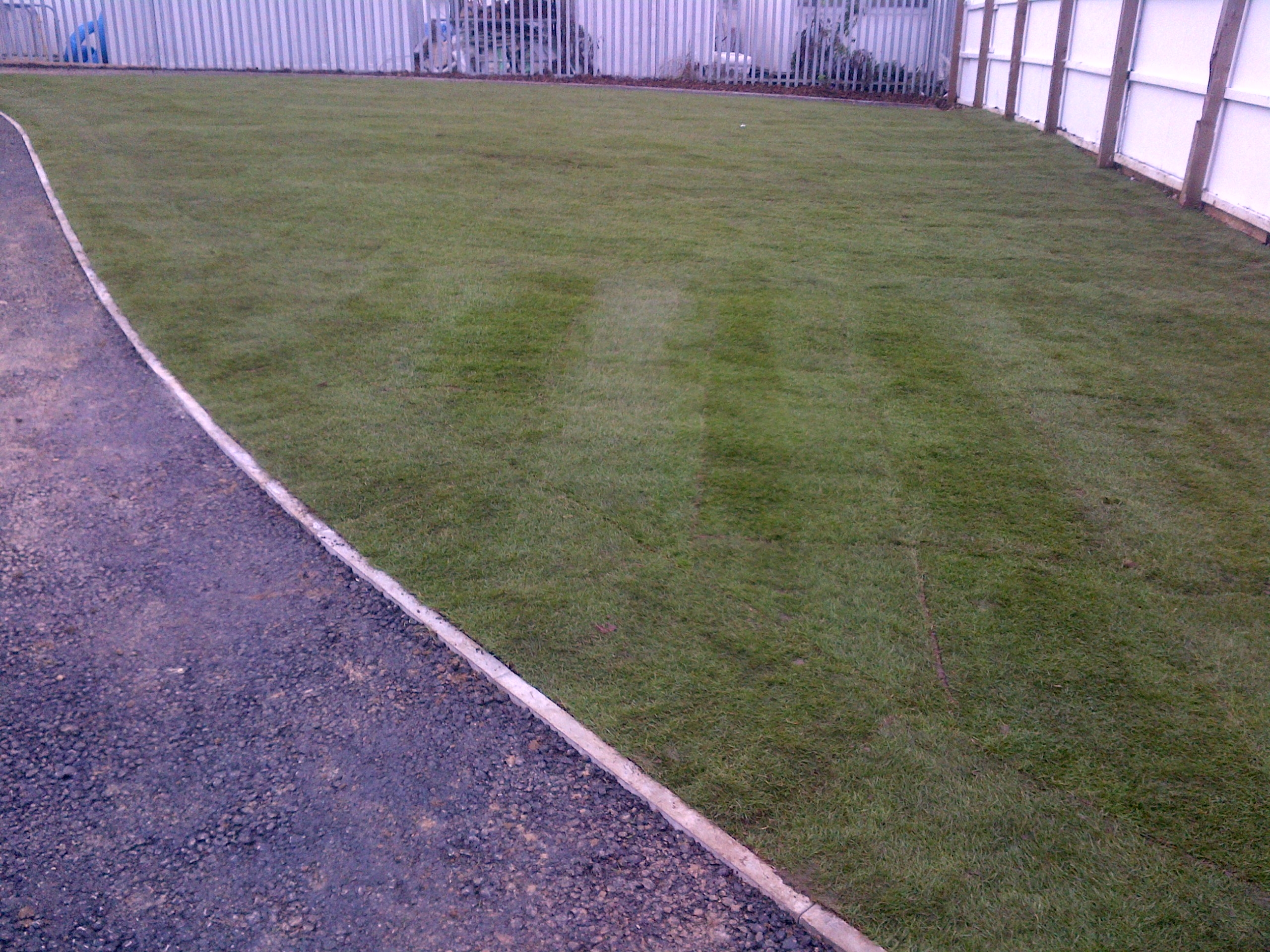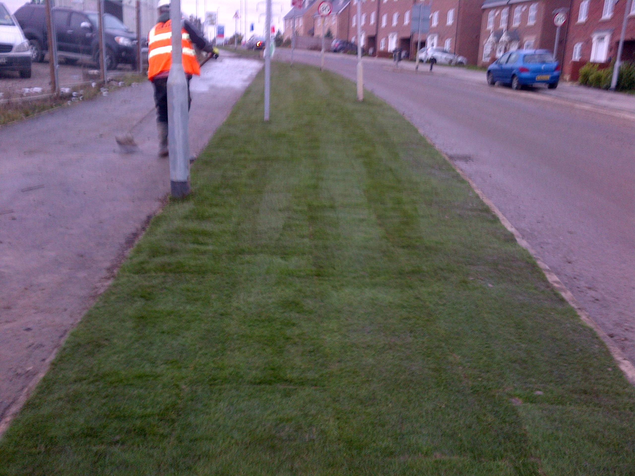 Verge re-turfing removal of existing ground vegetation and top soil, re-screen with fresh top soil and turf.