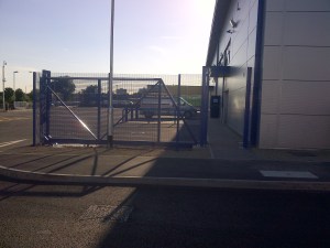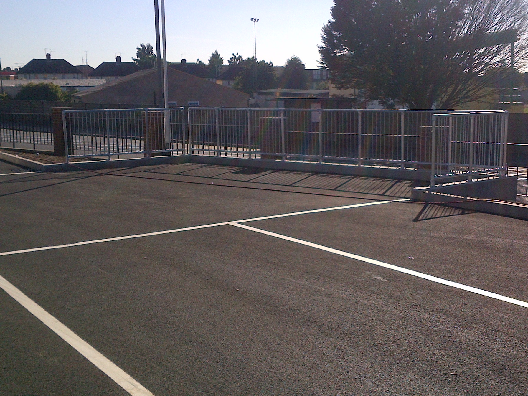 Gate erected through tarmac in road to be topped up with tarmac level for tidy finish as per specification required