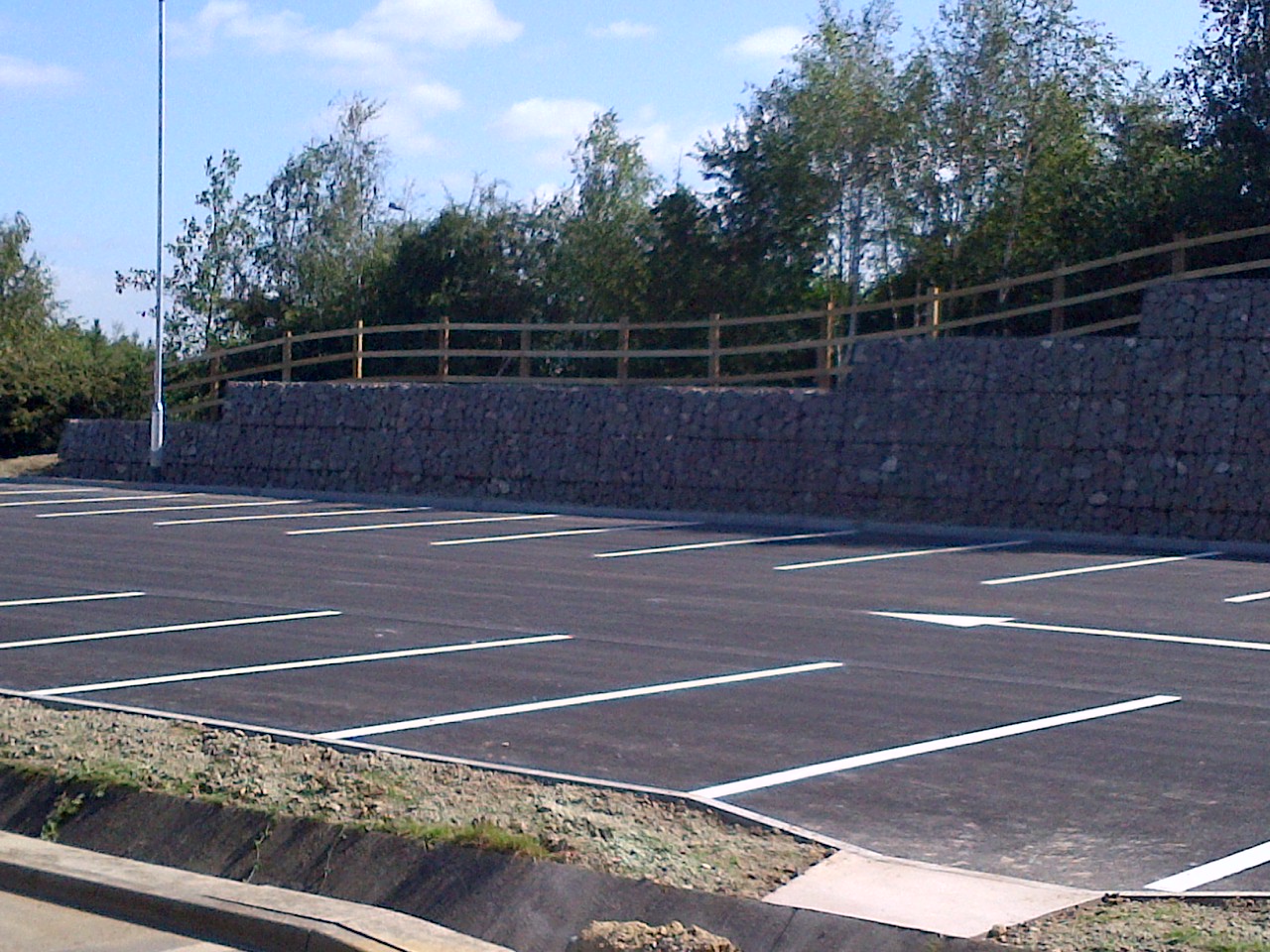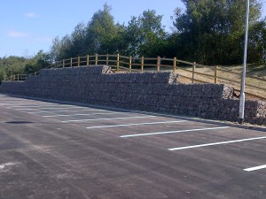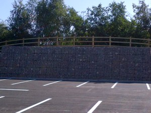 Post & 3 Rail Fence over gabian wall